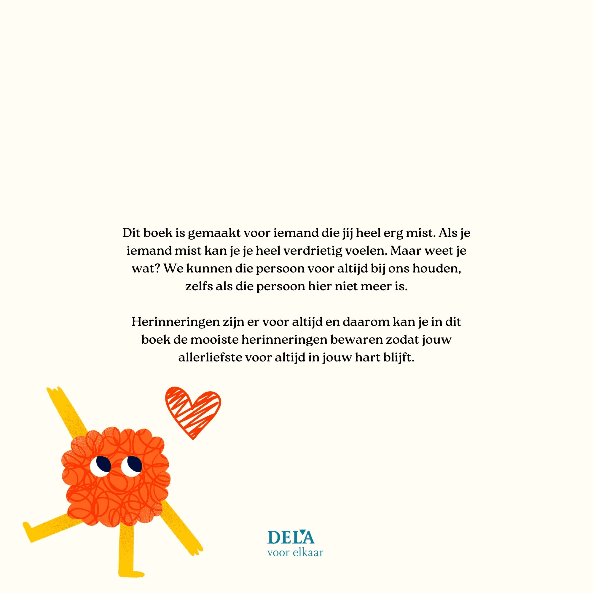 Dit is een herinneringsboek voor kinderen die te maken hebben met het verlies van een dierbare. Het was een examen opdracht voor een collega van mij die iemand nodig had om het boek voor haar te ontwerpen. Ik bood aan om haar te helpen omdat ik de uitdaging leuk vond en ik het een goede toevoeging vond aan mijn portfolio.