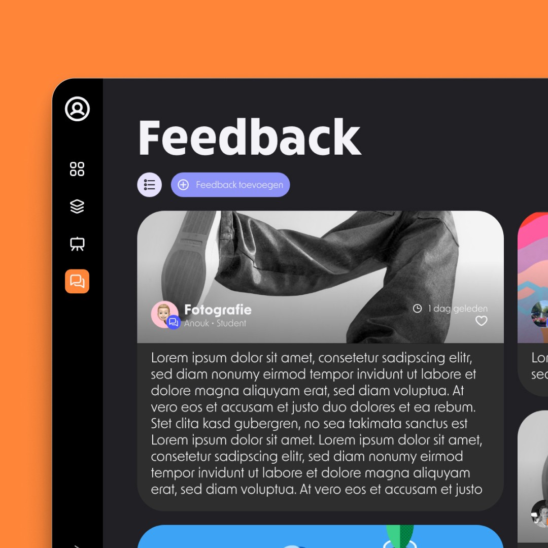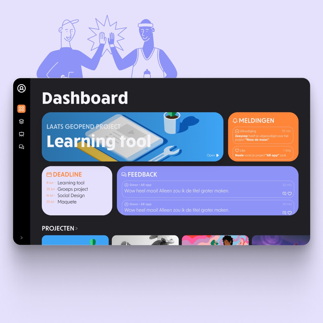 Op onze school werken wij met een programma waarin we onze projecten kunnen opslaan om ons proces vast te leggen en feedback te ontvangen. Maar dit programma werkt niet goed voor ons, omdat het niet overzichtelijk was en je alleen bestanden kon uploaden per onderdeel. Daarom hebben wij, als groep van 4 personen, een nieuwe website ontworpen die dit allemaal wel mogelijk maakt. Ik heb voornamelijk gezorgd voor de vormgeving. We hebben het prototype vaak getest en het is nu bijna volledig klaar. Het idee is dat het in de toekomst een werkend programma wordt — op dit moment wordt het namelijk nog door andere klasgenoten geprogrammeerd.